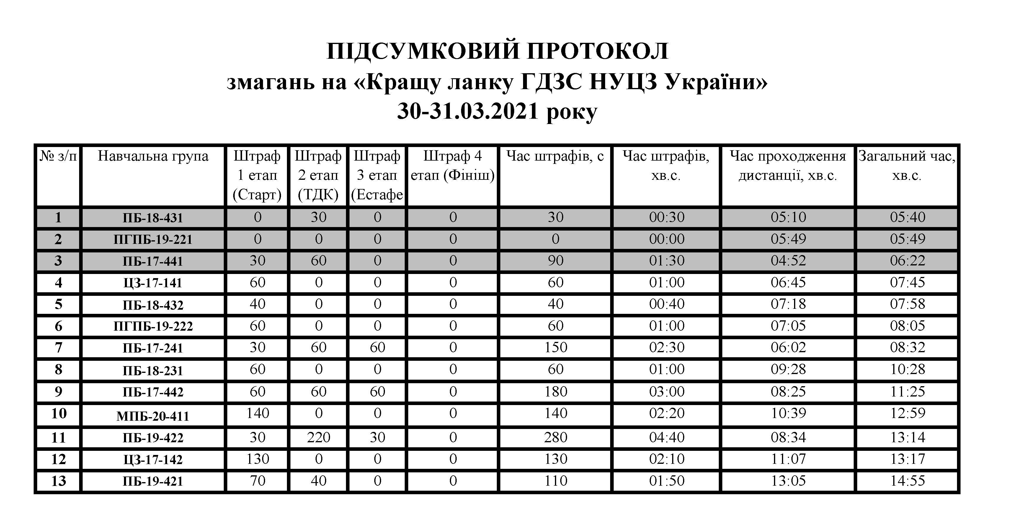 - Дейнека Костянтин – 10 хв 58 сек факультет цивільного захисту НУЦЗУ.