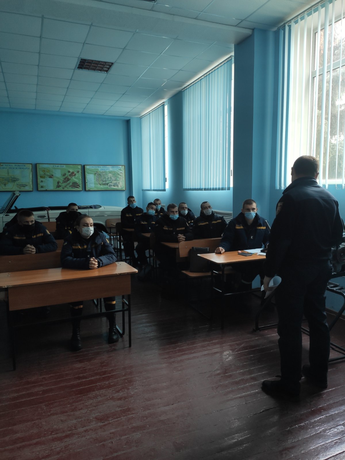 Бесіду з закріпленою групою ПГПБк-20-211 проводить доцент кафедри інженерної та аварійно-рятувальної техніки Роман КОВАЛЕНКО.