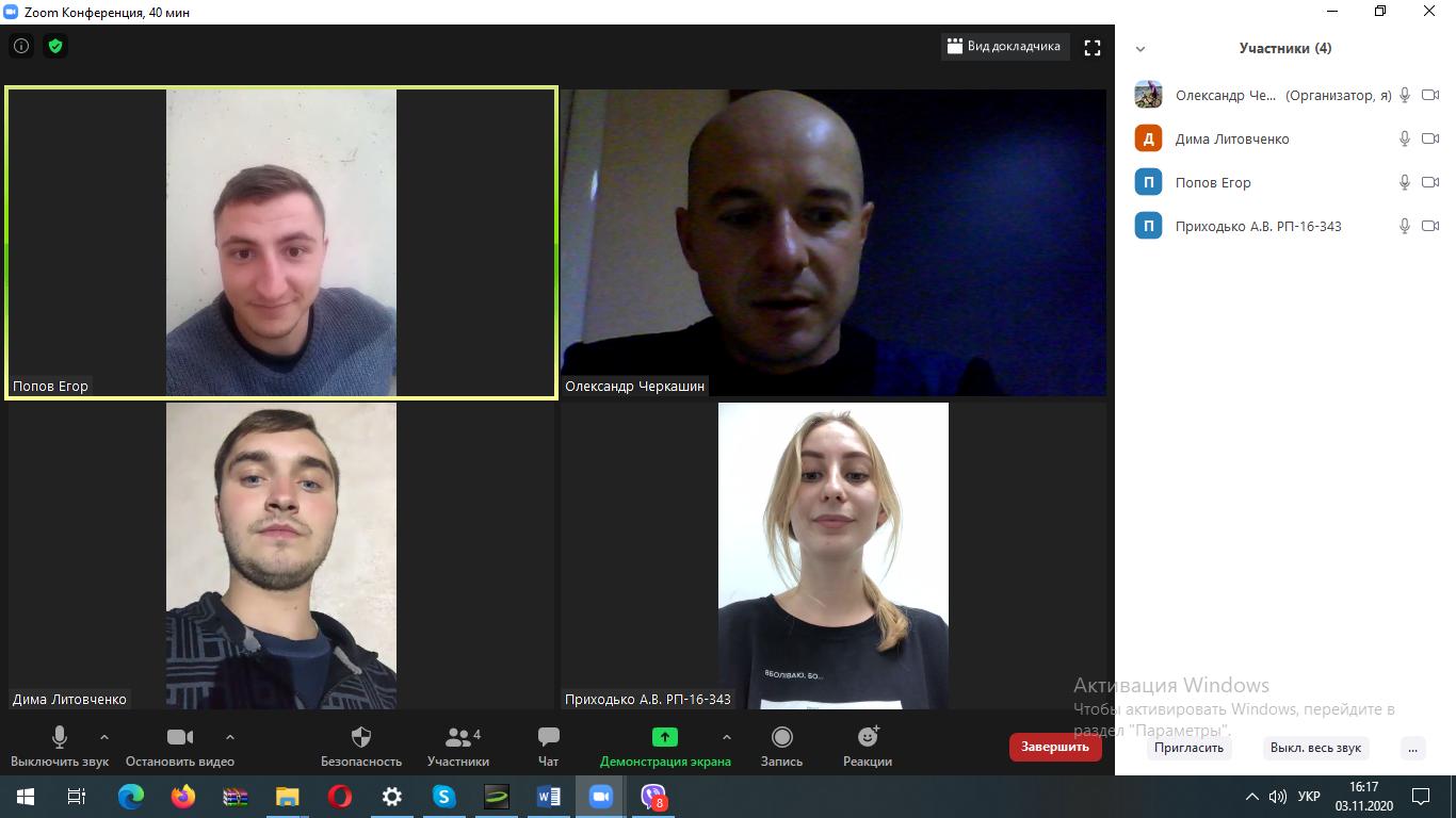 Бесіду в форматі онлайн-конференції з використанням програмного забезпечення Zoom з закріпленою групою МПГПБкс-20-221 проводить викладач кафедри пожежної та рятувальної підготовки Олександр ЧЕРКАШИН .
